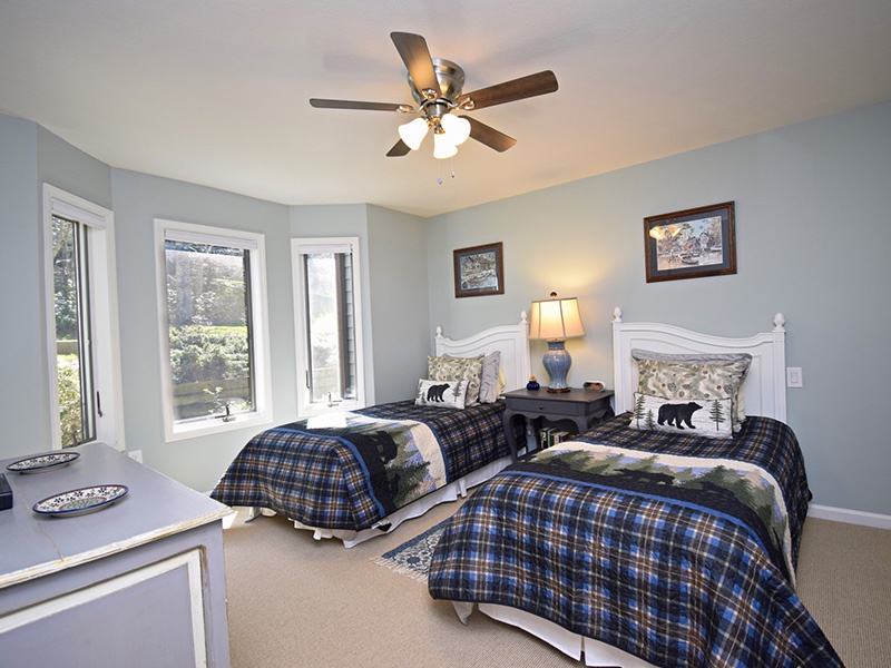 Bedroom 2: Two twin beds, 42" flat-screen TV, convenient access to bath #2 (tub/shower combo)