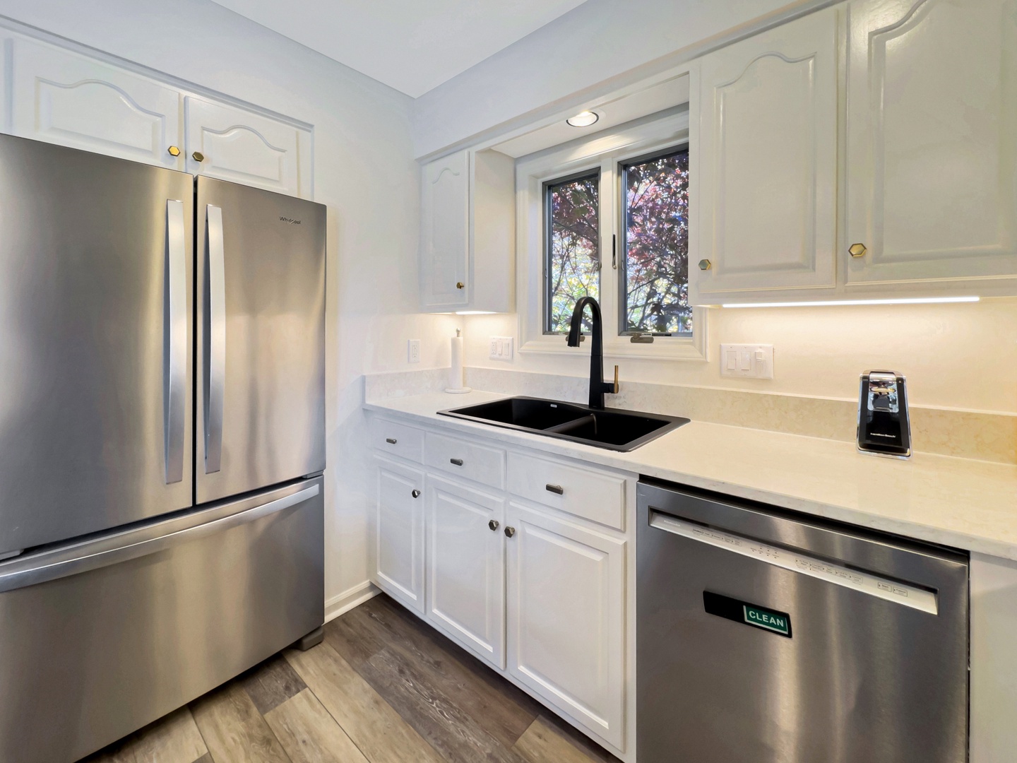 Fully equipped kitchen with granite countertops and stainless steel appliances