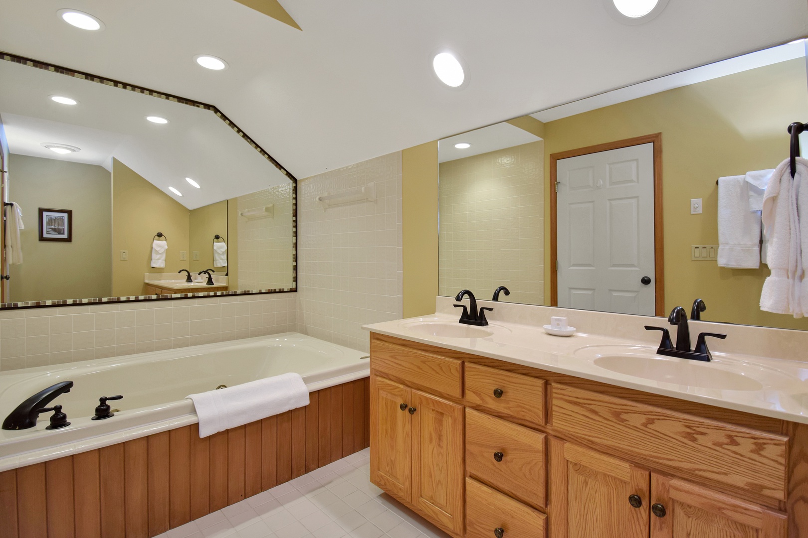 -Bedroom 2 (Main Floor): King bed, adjacent to tub/shower combo bathroom
