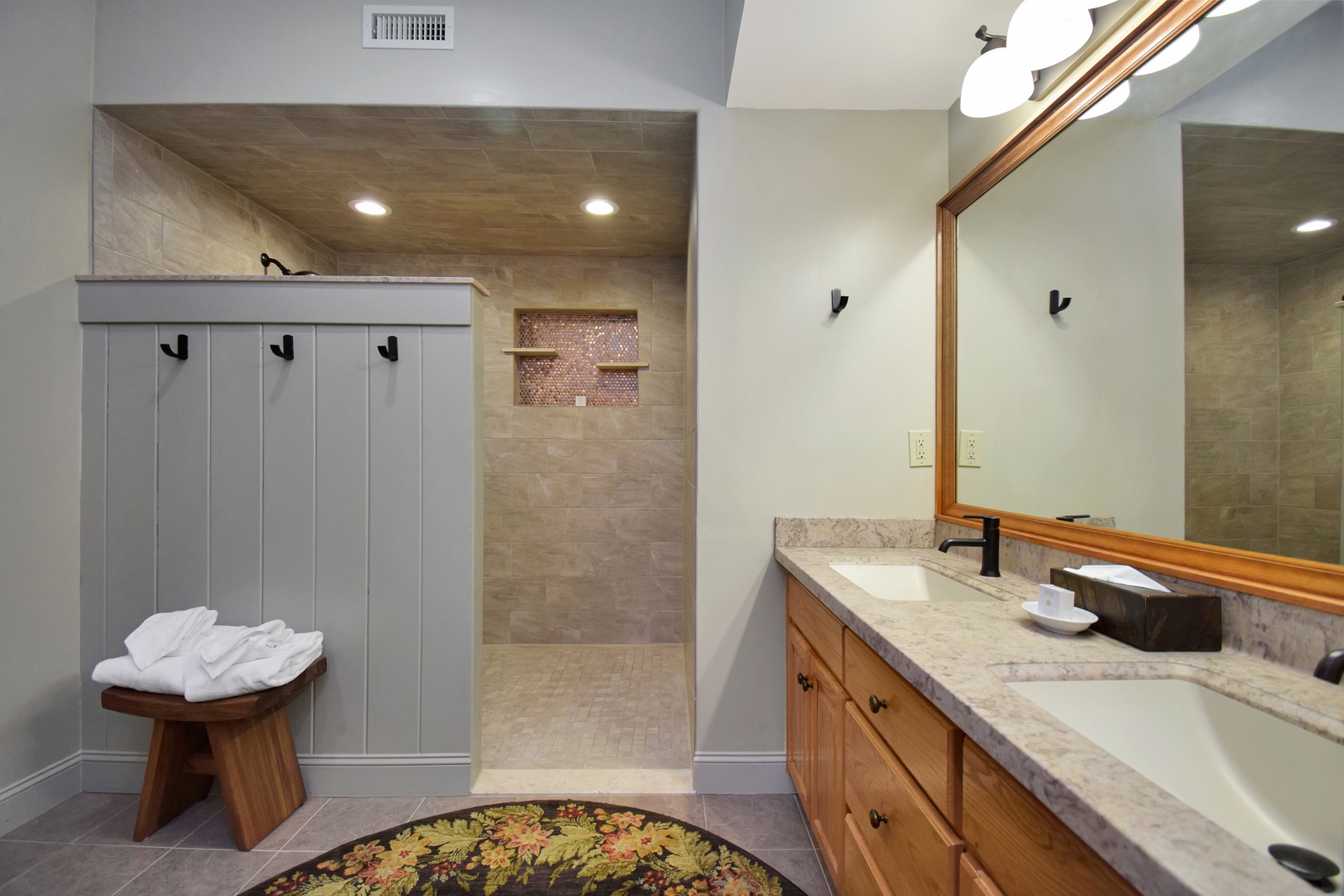 -Primary Bedroom: King bed, 4K TV, ensuite bath with large walk-in shower