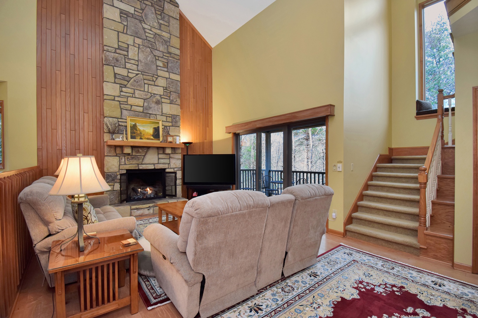 -Bright and airy living room with gas-burning fireplace and 4K TV/DVD