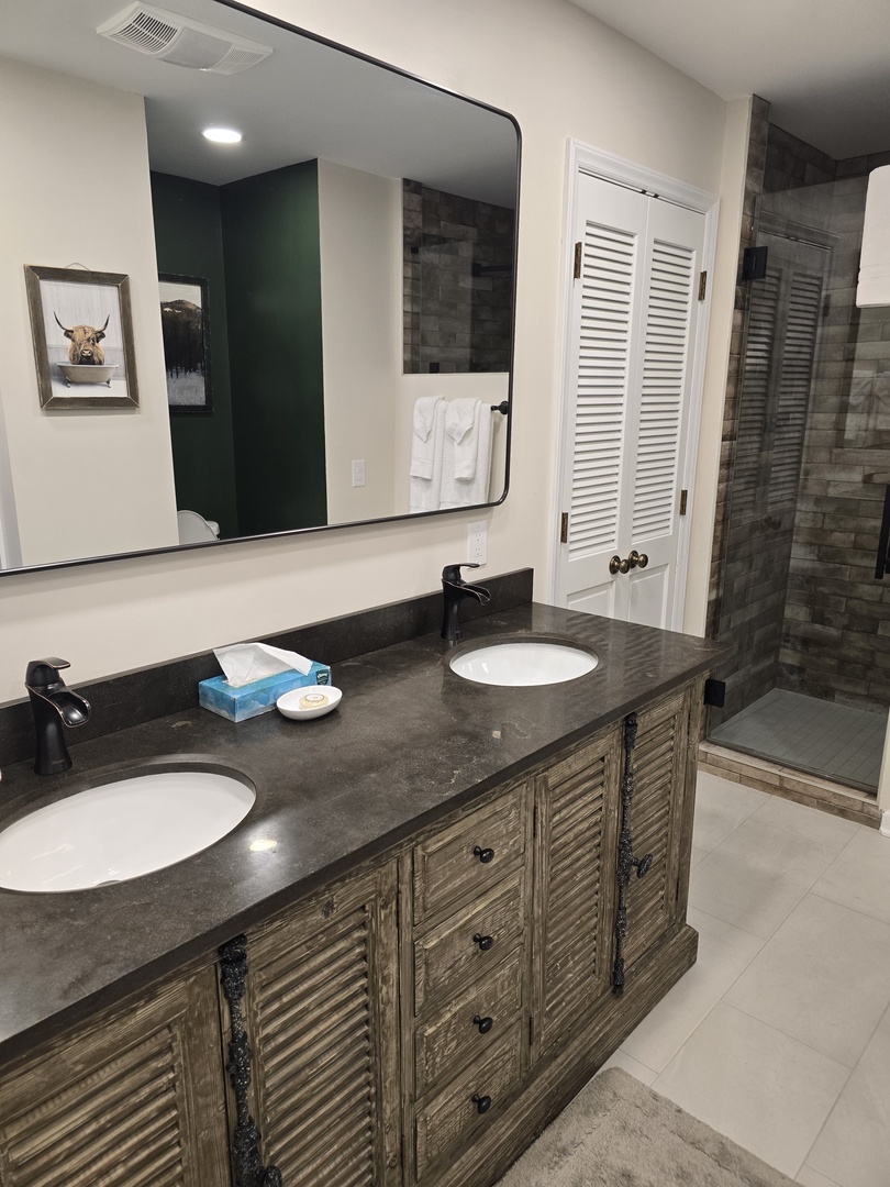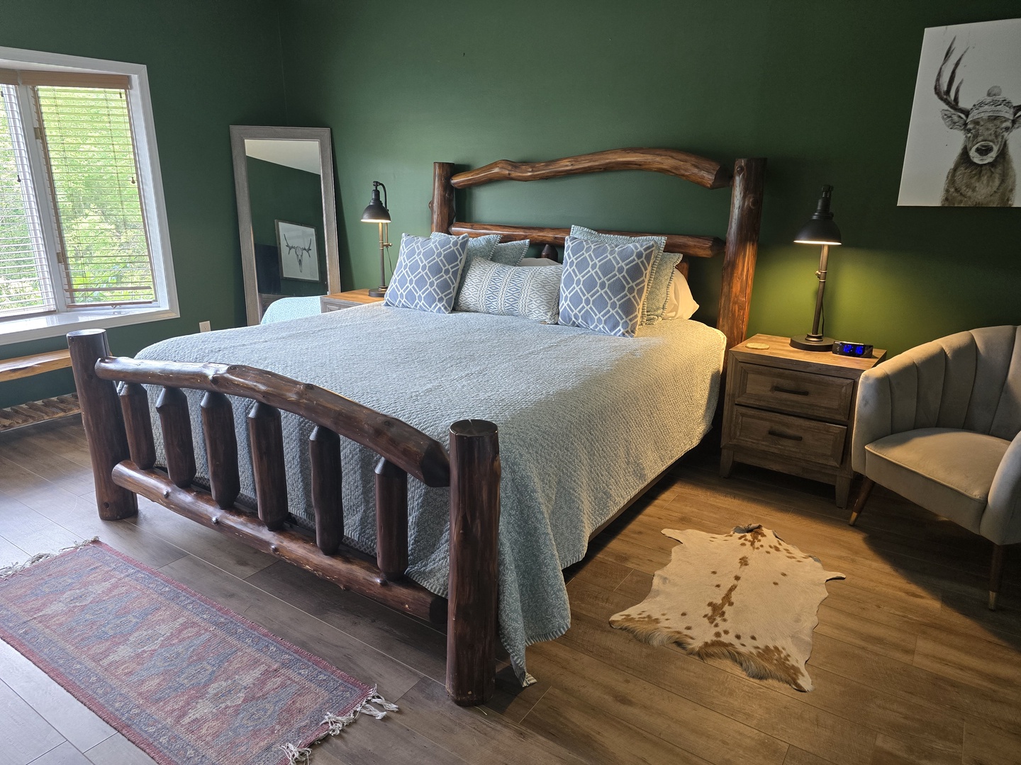 Master Bedroom: King bed, 43” flat-screen TV with Blu-Ray, USB ports, updated lighting