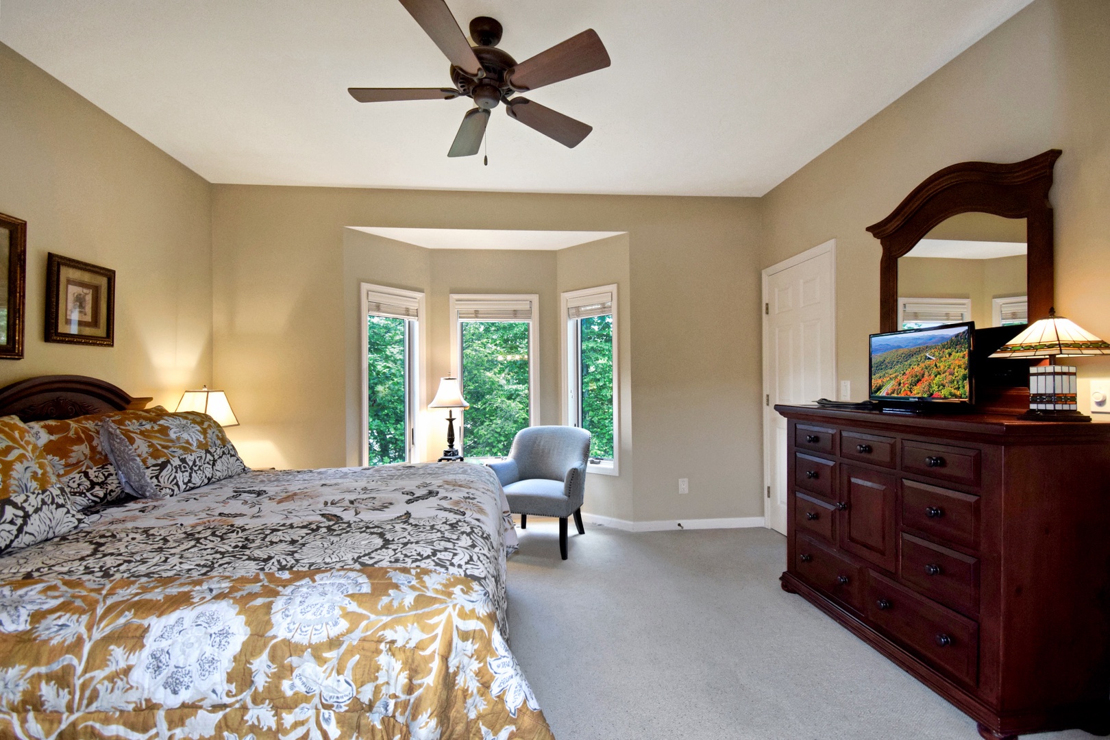 Primary Bedroom: King bed