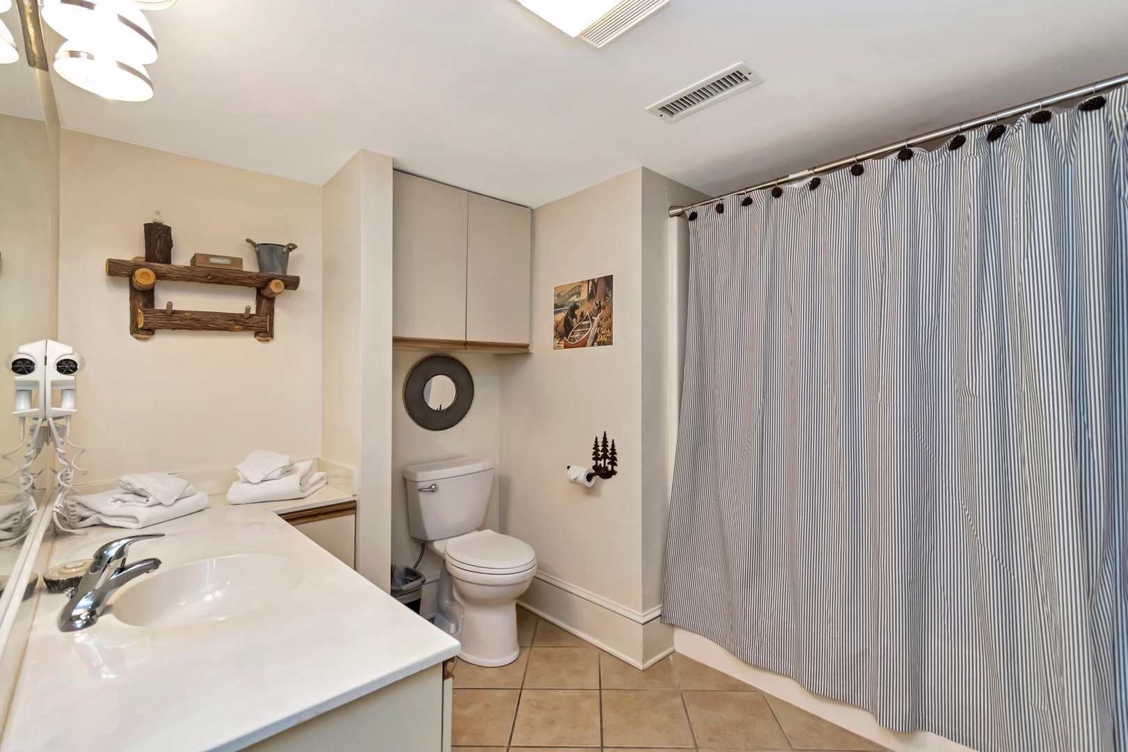 Bathroom with tub/shower combo and hairdryer included